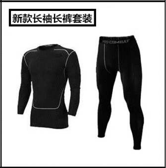 Shop Genuine men's sports slim fit clothing wicking stretch quick-dryingshort-sleeved t-shirt trousers shorts suit summer (New style blacklong-sleeved pants suit) in Malaysia